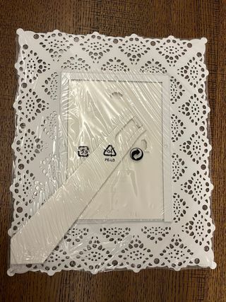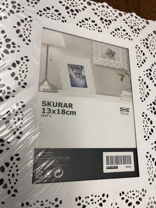 Portafoto della serie SKURAR di IKEA, perfetto per le tue foto. - Dimensioni interne: 13x18 cm (5x7 pollici). - Design decorato con trafori. - Colore bianco.