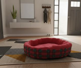 Comoda cuccia per cani o gatti con un design a quadri. - Rivestimento interno morbido. - Bordo rialzato per un maggiore comfort.
