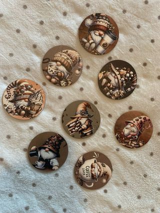 Set di sottobicchieri in legno con simpatici gnomi a tema caffè. - Design natalizio. - Materiale: legno.