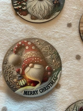 Set di sottobicchieri a tema natalizio con disegno di gnomo. - Decorazione Merry Christmas. - Design rotondo.