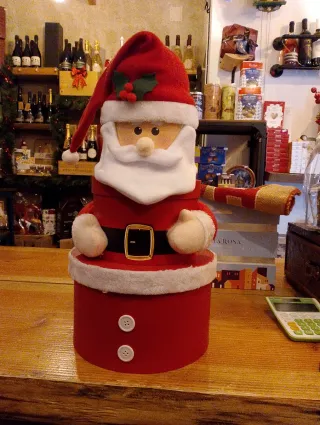 Originale scatola contenitore a tema natalizio, perfetta per conservare piccoli oggetti o come decorazione. - Design a tema Babbo Natale. - Finitura glitterata.