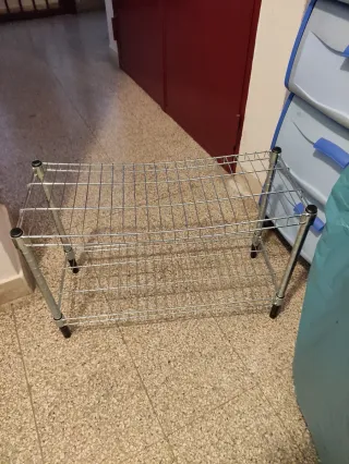 Scaffale a due ripiani in metallo. - Struttura robusta. - Design moderno.