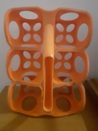 Pratico porta bottiglie con manico, ideale per trasportare bevande. - Design a 6 scomparti. - Realizzato in resistente plastica.
