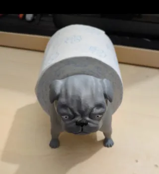 Originale porta rotolo da bagno a forma di cane, realizzato con stampa 3D. - Design unico a forma di bulldog. - Colore grigio e bianco.