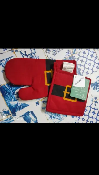 Set natalizio composto da guanto forno e presina. Nuovi, ancora con cartellino.