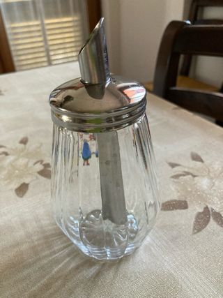 Elegante dosazucchero in vetro trasparente, perfetto per aggiungere un tocco di stile alla tua tavola. Il design presenta raffigurazioni di coppie in abiti tradizionali. - Corpo in vetro con finitura a coste. - Coperchio e beccuccio in metallo lucido.