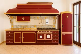 Vendo cucina originale Officine Gullo, eccellenza italiana nella produzione di cucine di lusso. Un’opera d’arte artigianale, realizzata su misura con materiali di altissima qualità. Ogni cucina Gullo è unica: non ne esistono due uguali. Modello: Color Chianti Lucido con dettagli in Rame e Ottone Dimensioni: Lunghezza 3,45 mt – Altezza 2,43 mt Elettrodomestici Siemens inclusi Dotazioni professionali: • 2 forni (1 a gas, 1 elettrico) • 4 fuochi + 1 piastra in ghisa smaltata da 180 per carni e pesce • Lavastoviglie integrata • Frigo-congelatore a colonna • Cappa a doppio motore Le cucine Officine Gullo sono scelte dai migliori chef