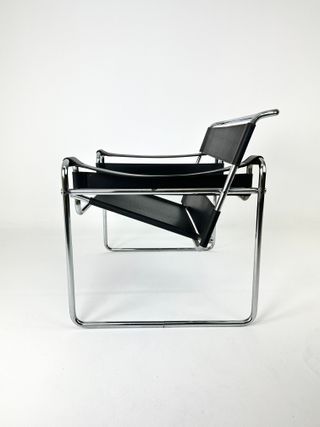 Celebre poltrona modello Wassily disegnata da Marcel Breuer, in ottime condizioni come da foto allegate. Struttura in tubolare cromato e seduta in cuoio nero. Non marchiata risalente agli anni 70. Possibilità di spedizione o consegna gratuita a Milano e limitrofi. 4 PEZZI DISPONIBILI