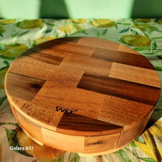 Elegante tagliere per formaggi con un design unico e funzionale. Perfetto per servire e gustare i tuoi formaggi preferiti. - Set di 3 utensili inclusi: forchetta, coltello per formaggio e coltello. - Realizzato in legno pregiato con finiture a contrasto. - Cassetto estraibile per riporre gli accessori.