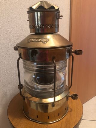 Lampada nave in ottone h. Cm 38 per collezionisti marinai. può essere appesa, ed illumina anche sotto o usata come lampada da scrivania