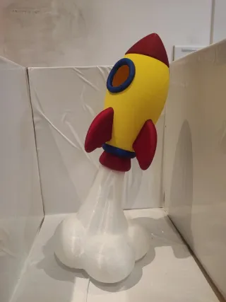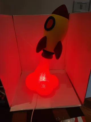 Lampada decorativa a forma di razzo, perfetta per illuminare con un tocco di fantasia. - Design unico a forma di razzo. - Base con effetto fumo stilizzato.