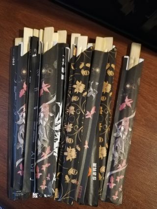 Sono 12 bacchette cinesi in legno. Nuove. Le vendo causa inutilizzo. (Nel mio armadio potete trovare anche forchette e paletta per dolci. Sono a disposizione per ulteriori foto e informazioni)