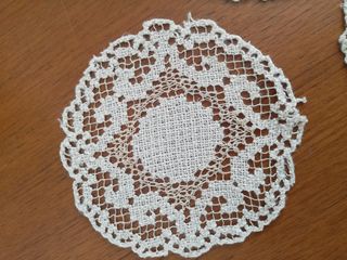 Sono 3 sottobicchieri presumibilmente degli anni '30, eseguiti a mano. Diametro 13cm circa. Sono a disposizione per ulteriori foto e informazioni.