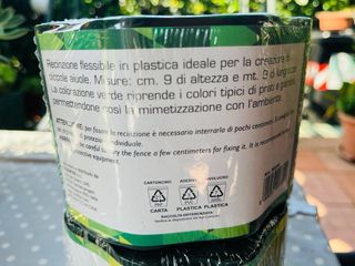 2 pezzi Recinzione flessibile in plastica, ideale per creare piccole aiuole. Perfetta per delimitare i vostri spazi verdi. - Misure: 9 cm di altezza e 9 mt di lunghezza. - Colore verde, si mimetizza bene con prati e giardini.