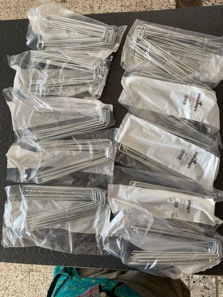 Chiodi a U in acciaio zincato per fissaggio telo pacciamatura nel terreno oppure per fissare il tubo goccia. Diametro mm3, lunghezza cm 17 x 3 larghezza , peso gr 40 . 20 pezzi nella confezione . Lotto di 10 confezioni a € 26,00