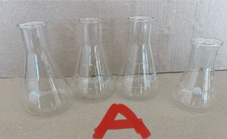 A:Beuta graduata in vetro borosilicato da 100ml cm 10h pz 1 e da 200ml cm 13 h pz 3 . In totale 4 pezzi a € 40 B: bicchieri cilindrici graduati ml 500 pz 1 , da 250ml pz 4 , da 150ml pz 2 . in totale 7 pezzi € 45.