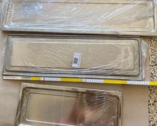 Vassoi in acciaio inox 18/10 Bacinelle nate come raccogli acqua per scolapiatti in acciaio. Cm 48 lunghezza e cm 22 larghezza , disponibilità 2 pezzi , 9 cadauna. Cm 68 lunghezza e cm 22 larghezza ,disponibilità 3 pz , € 10 cadauna Cm 78 lunghezza x 22, disponibilità 1 pezzo € 11. scegli quello di cui hai bisogno e ti personalizzo l’annuncio