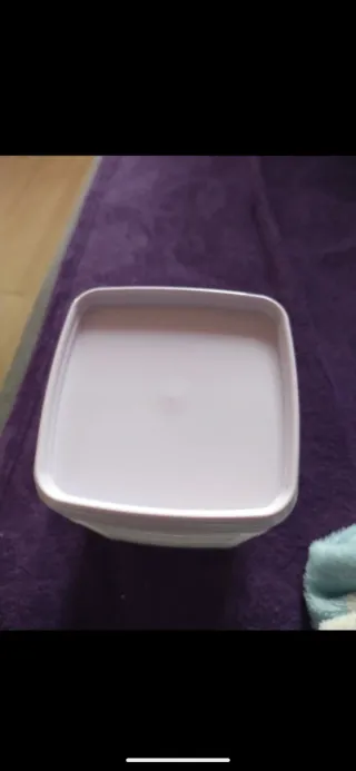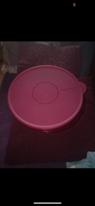 Ciotola rotonda Tupperware di colore rosa. - Coperchio con logo. - Design a incastro.