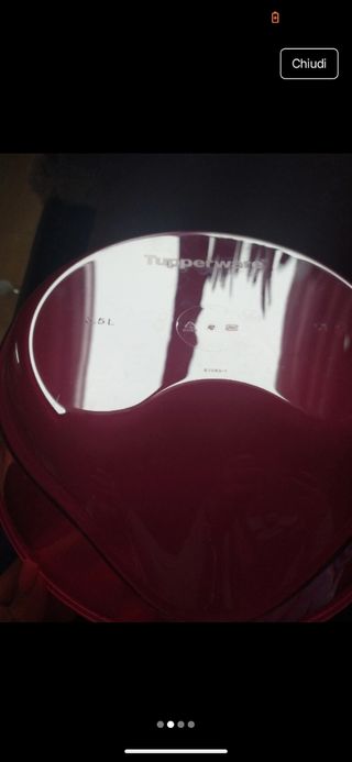 Contenitore per alimenti con coperchio. - Coperchio rosso. - Base trasparente.