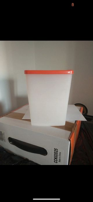 Utensile da cucina Tupperware, pratico e resistente. - Colore nero con dettagli arancioni. - Realizzato in plastica di alta qualità.