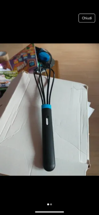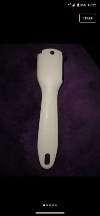 Apriscatole Tupperware in plastica, con un design moderno che unisce il nero e il grigio. In ottime condizioni l'unica cosa e macchiato di giallo ma non presenta difetti - Materiale resistente. - Colore bicolore.