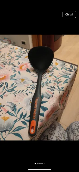 Mestolo della marca Tupperware, un accessorio utile per la cucina. - Design ergonomico. - Foro per appenderlo.