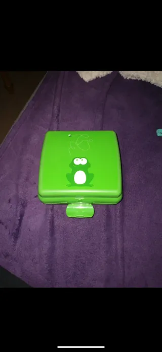 Pratico contenitore per alimenti con un simpatico disegno di una rana. - Chiusura a scatto. - Design divertente per i più piccoli. - Ideale per la scuola o gite.