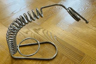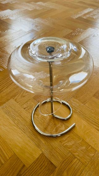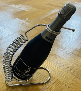 Elegante portabottiglie dal design retrò, perfetto per dare un tocco di stile alla tua tavola. - Struttura in metallo cromato. - Design a spirale e base arrotondata. Nuovo, mai usato, (bottiglia non compresa)