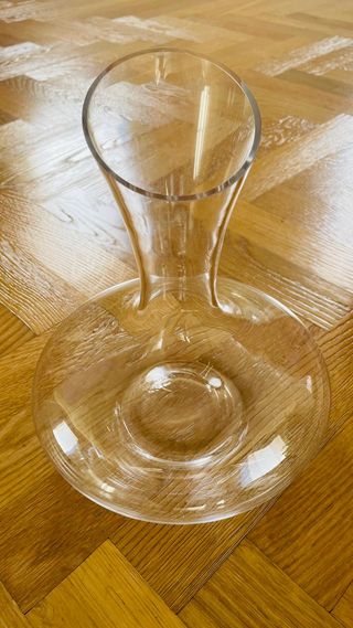 Elegante decanter in vetro Brandani Gourmet, perfetto per servire vino o altre bevande. - Design moderno e raffinato. - Base ampia e stabile. - Collo affusolato per un versaggio preciso. - Supporto scoladecanter in metallo cremato. Nuovo, mai usato (imballaggio originale).