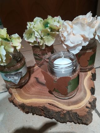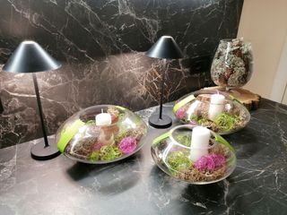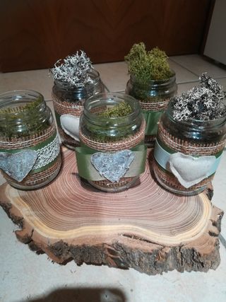 2 centrotavola grandi 1 medio vetro grosso .arredato muschio palle alluminio fiocco