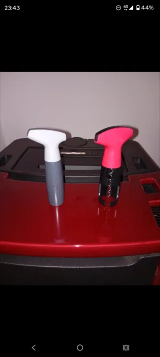 Set di utensili Tupperware. Cavatappi e pompetta per aspirare l'aria non ho i tappi - Colore: rossa, nero grigio - Materiale: plastica