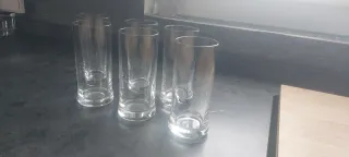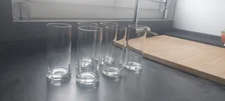 Elegante set di sei bicchieri alti, vintage anni '80, perfetti per servire long drink e cocktail. - Design slanciato e moderno. - Base solida da 2cm per una maggiore stabilità.