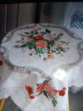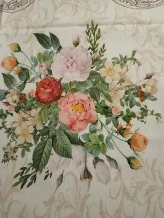 Bellissima centrotavola dai colori tenui e delicati. Perfetta per un tocco romantico alla tua tavola o idea regalo - Misure: 80x80 cm - Motivo floreale con rose e altri fiori - Tessuto morbido come il velluto e di alta qualità Nuovo, mai usato Spedito con Bartolini o InPost o PT