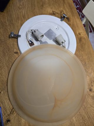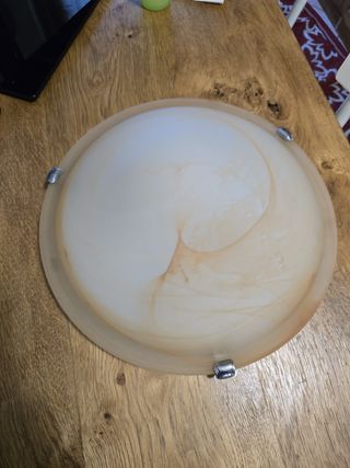 Plafoniera con un design elegante e striature che creano un effetto unico. - Portalampada in plastica. - Base in metallo.