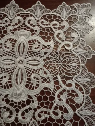 Elegante centro in pizzo, perfetto per aggiungere un tocco di raffinatezza alla tua casa o ideale come regalo - Misure: 38x38 cm. - Design intricato e dettagliato. - Bordo decorato. Nuovo, mai usato Spedito con Bartolini o InPost o PT