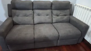 Comodo divano a 3 posti, perfetto per rilassarsi. Il rivestimento è in un elegante color antracite. - Due sedute con meccanismo recliner. - Design moderno e accogliente.