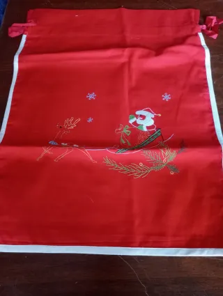 Set di due sacchetti per Natale, perfetti per contenere regali o dolcetti. - Dimensioni: 45x34 cm. - Design natalizio con Babbo Natale e renne. - Ricami colorati. Nuovo, mai usato Spedito con Bartolini o InPost o PT