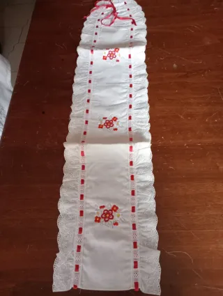 Bellissimo runner da tavolo, ideale per arredare con stile la vostra casa o ideale come regalo. - colori : rosa, grigio, beige - Ricamo delicato e romantico. - misure : 90x40 cm Nuovo, mai usato Spedito con Bartolini o InPost o PT
