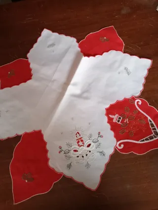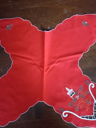 Bellissimo centrotavola a forma di stella di Natale, perfetto per le feste! - Realizzato in cotone, è delicato e di un colore rosso intenso. - Presenta ricami e dettagli eleganti. - Un pezzo unico per decorare la tua tavola natalizia. Misure : diametro 60 cm Nuovo, mai usato Spedito con Bartolini o InPost o PT