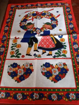 Set di due strofinacci da cucina con un bellissimo design tirolese. Perfetti per aggiungere un tocco di colore e tradizione alla tua cucina. - Motivo con bambini in costume tirolese e paesaggio alpino. - Bordi decorati con fiori e motivi tradizionali. Nuovo, mai usato Spedto con Bartolini o InPost o PT