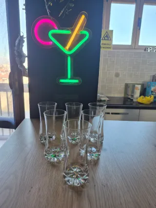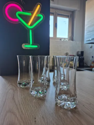 Elegante set di 8 bicchieri Brandani, perfetti per ogni occasione. La loro forma classica li rende adatti sia per bevande analcoliche che per distillati. - Capacità: 30cl ciascuno. - Design ricercato con lavorazione a rombi. - Ideali per servire acqua, vino o cocktail. - Se ne volete di meno, vendo 4 bicchieri a 15 euro