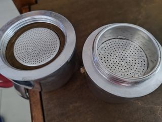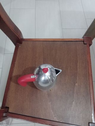 Caffettiera moka guzzini vintage con manico rosso, usata poche volte, per tre tazze.