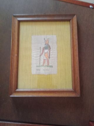 Grazioso quadretto dipinto a mano in papiro originale di Siracusa raffigurante un dio egizio