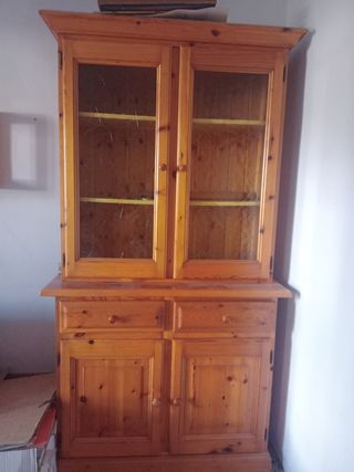 Credenza in abete, con due ante in vetro, formata da due parti
