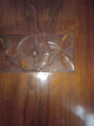Armadio antico, tre ante più cassetti, decorato con delle incisioni floreali. Regalo anche giro letto completo