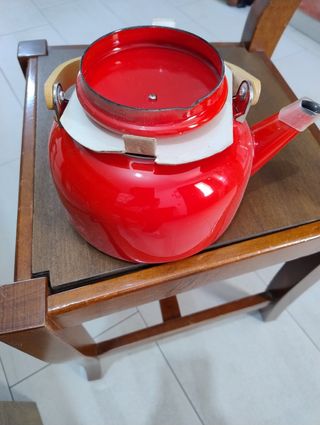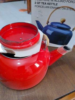 Bollitore acqua acciaio porcellanato colore rosso, mai usato