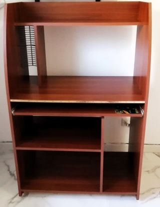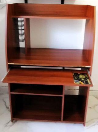 Mobile porta PC in legno laminato di colore noce chiaro, con porta tastiera estraibile, lato sinistro dedicato ai CD/DVD e vari ripiani. Condizioni Ottime, pari al Nuovo. Dimensioni cm. altezza 138x larghezza 90x profondità 51- Astenersi Perditempo- ORISTANO- Solo ritiro di persona-