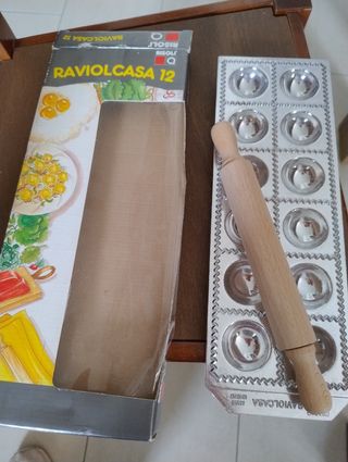 Set per fare i ravioli a casa mai usato in alluminio fuso lucidato con mattarello