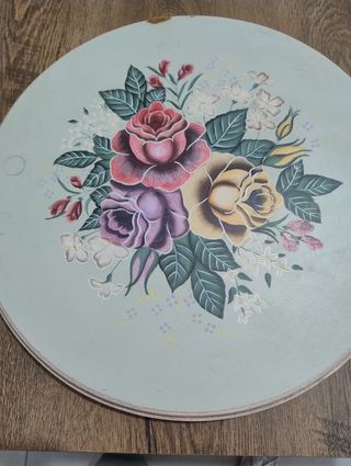 Quadro rotondo, presenta una piccola sbucciatura, e portagioie con due cassettini