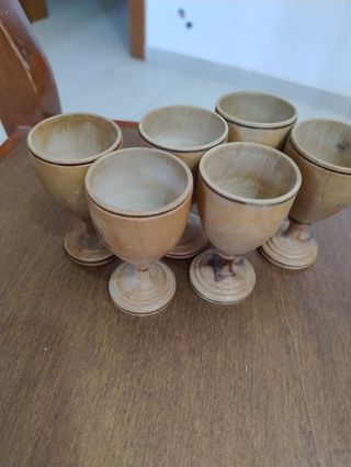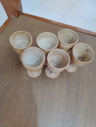 Sei porta uovo in legno lavorati a mano